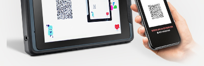 8” screen allows the app QR code and NFC sensor interface to be displayed simultaneously |
